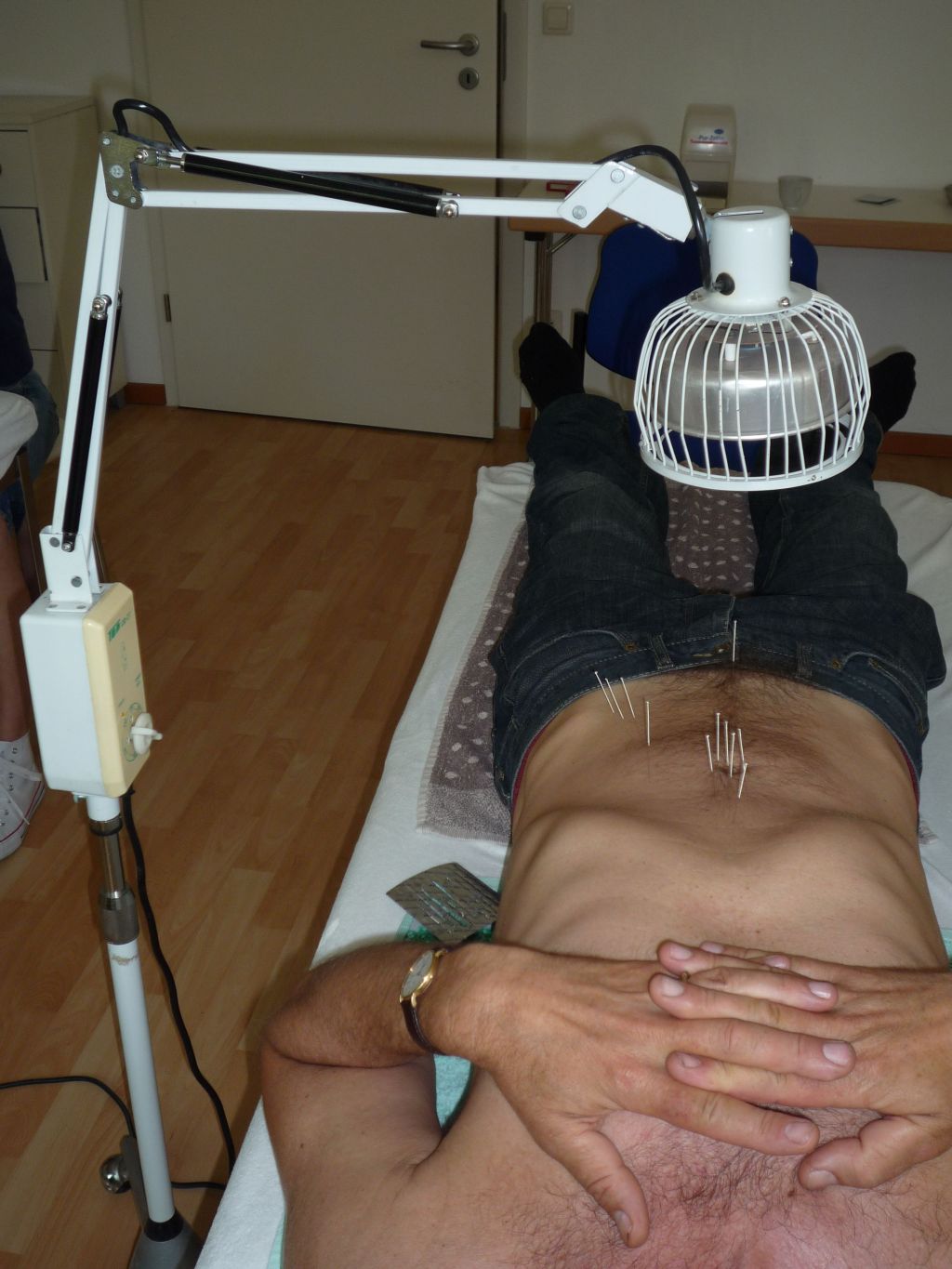 Variante der Moxatherapie, die Moxa-Lampe. Chinesische Forscher haben bereits in den 70-iger Jahren die